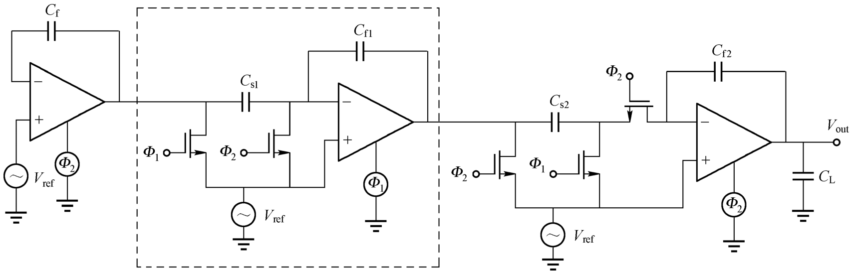 图1.23 带有采样开关运算放大器的串联积分器