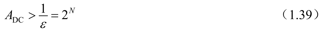 从式(1.39)中可以看出, ε 未知,且为了获得更高的精度,要尽可能地降低 ε 。实际上,在大多数运算放大器结构中, ε 中的一部分与信号线性相关,并且会产生微小的增益误差。这种误差在大多数ADC中基本是可以接受的。