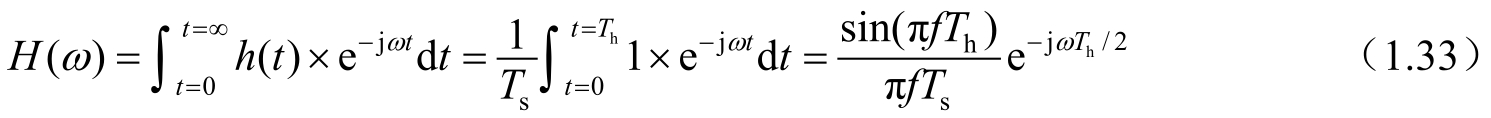 在频域中,零阶采样保持电路的传递函数 H ( ω )可以通过傅里叶变换得到(这个变换的结果具有时间量纲)。为了得到一个无量纲的传递函数,我们引入归一化的时间 T s (采样周期),于是有