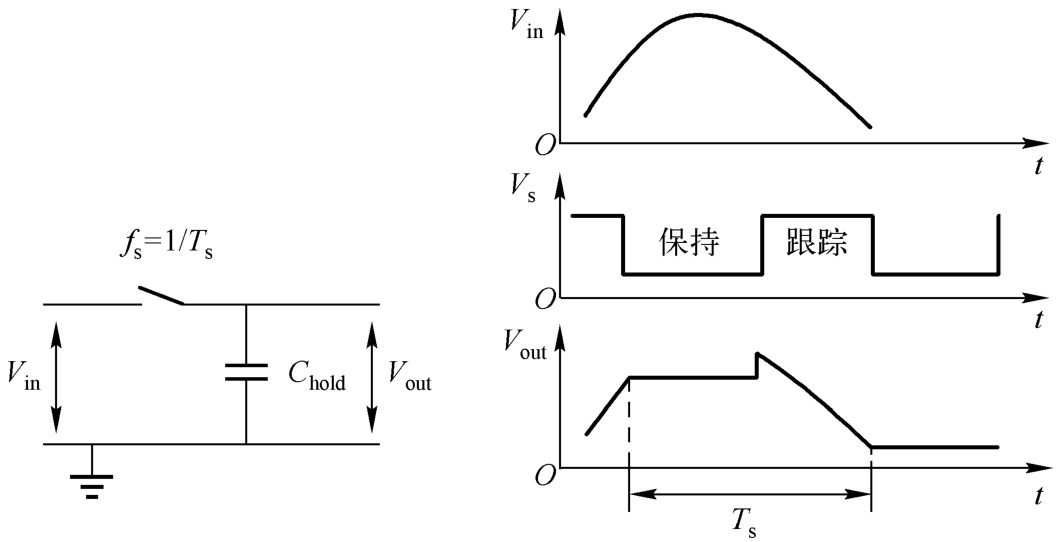 采样保持(Sample-and-Hold,SH)电路及跟踪保持(Track-and-Hold,TH)电路是执行采样操作的主要电路。在本节中,我们会对采样保持电路的性能指标、构成元器件及基本应用结构进行讨论。