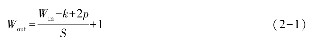 式中, W out 为输出矩阵尺寸, W in 为输入特征图或原始图像尺寸, k 为卷积核大小, p 为填充大小, S 为步长。对计算出现非整数的情况进行向下取整即可。