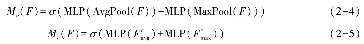 如图2.9所示,给定输入特征 F ∈R C × H × W ,通过通道注意力模块和空间注意力模块,依次求解得出通道注意力 M c ∈R C ×1×1 和空间注意力 M s ∈R 1× H × W 。注意力特征处理过程如式(2-2)和式(2-3)所示: