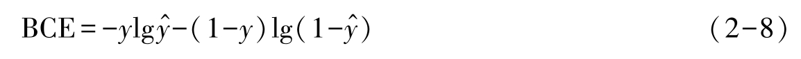 使用改进的U-Net模型来提取脊柱X线图像中的椎体,这是一个二值分割任务,标签只有背景和椎体两种类型,因此使用二值交叉熵(Binary Cross-Entropy,BCE)作为损失函数。二值交叉熵定义为