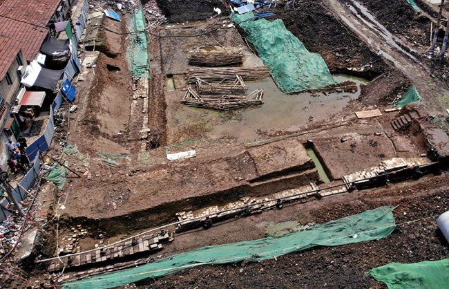 图1-6 2019年武胜门城墙遗址考古现场,在明清城砖之下发现有宋代城墙遗址