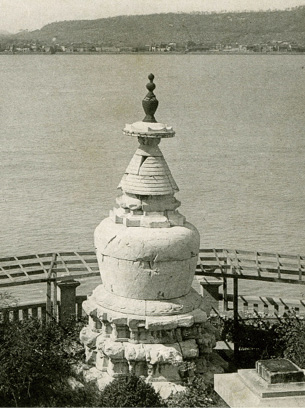 图1-17 民国时期立于江畔黄鹄矶头的胜像宝塔(张嵩供图)