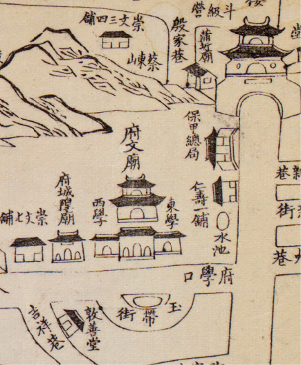 图1-23 1883年《湖北省城内外街道总图》中的武昌府文庙及东西两路学宫