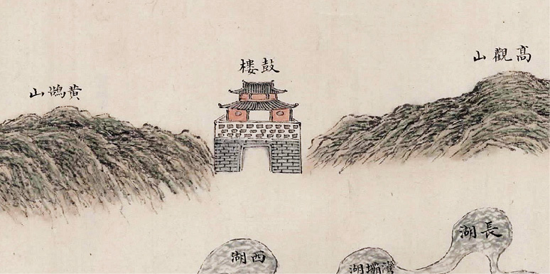 图1-26 乾隆武昌城池图中的蛇山钟鼓楼