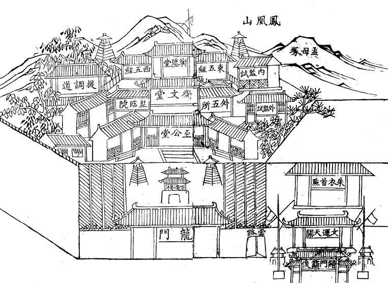 古代方志中虽然把孔庙旁的学宫称为“学校”,但其与近代教育中所说的学校,事实上有很大区别。想要进入府、州、县学,要先通过“童试”,取得“生员”资格,也就是俗称的“秀才”,这是古代中国成为“读书人”的第一道门槛。各地的府、州、县学,事实上是科举制度中的基层组织。国家层面的正式科举考试,分为三级,即乡试、会试和殿试。乡试为省一级考试,地点在各省省会,每三年举行一次,考期在农历八月,故又称“秋闱”。参加乡试者,大部分是各府、州、县学的生员,此外也有国子监监生,其考试地点,正是建于各省省城内的“贡院”。乡试考中者称“举人”,他们在第二年农历二月,可前往参加在京师贡院举行的会试,即所谓“春闱”,考中者称“贡士”,当年即参加在宫中由皇帝亲自主持的“殿试”,经殿试合格后称为“进士”。