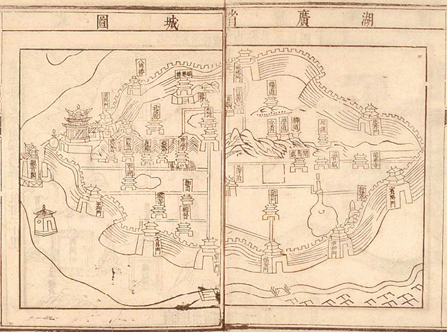 图1-20 清康熙《湖广通志》中的武昌城池图