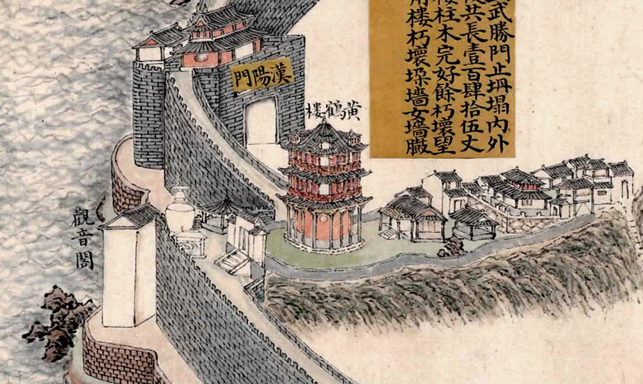 图1-30 乾隆四十三年陈辉祖奏折所附《武昌城垣图》中的黄鹤楼