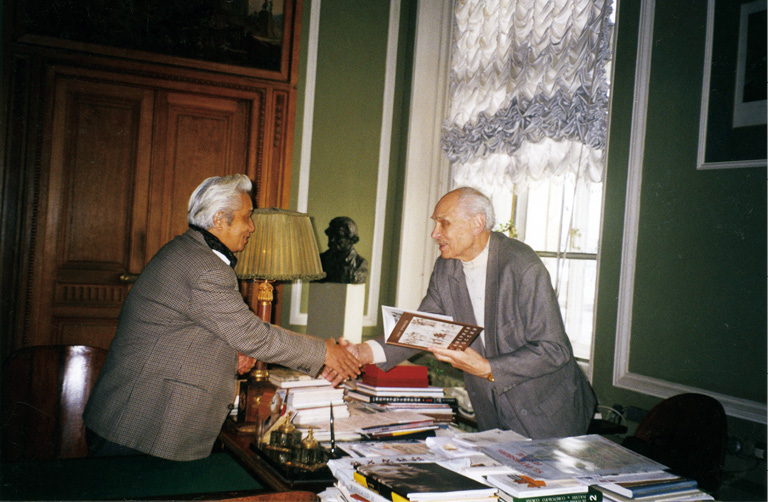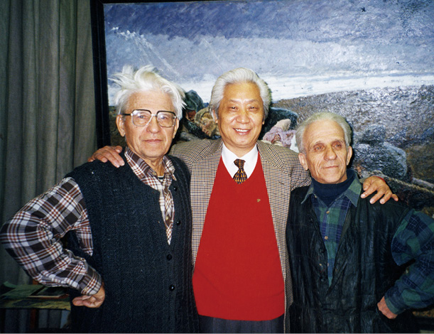 1999年访问俄罗斯,与画家特卡乔夫兄弟合影