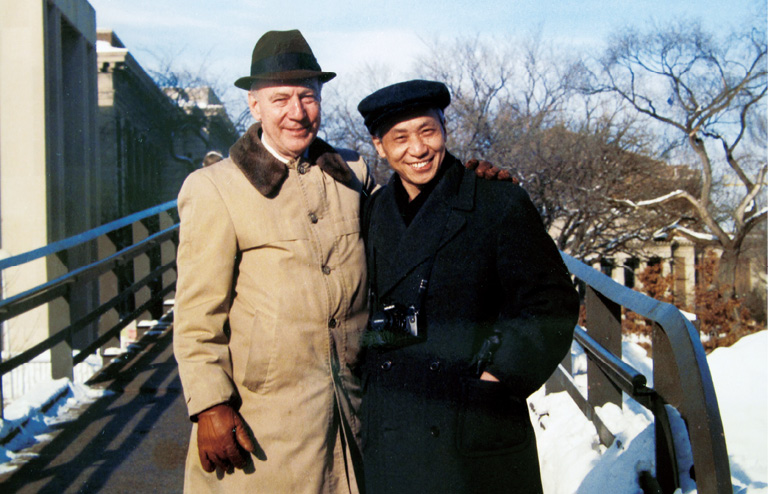 1985年,访美与明尼苏达大学校长海勒(左)合影