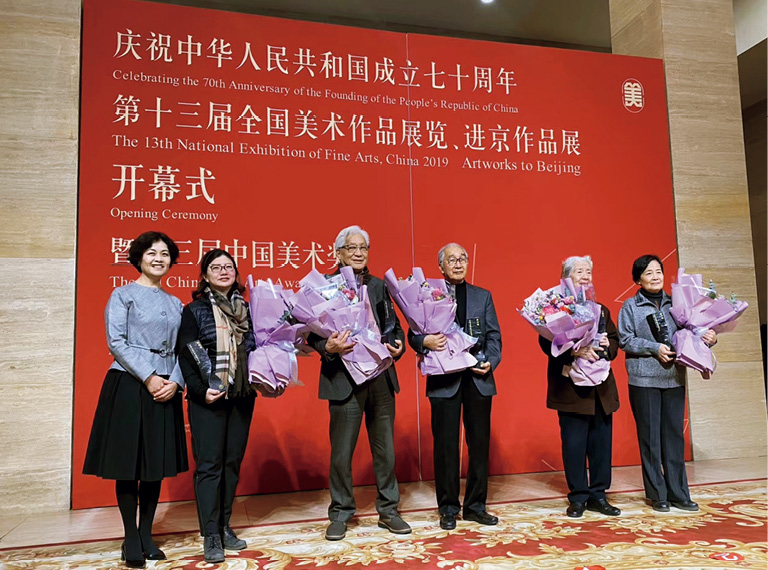 左起:铁凝、刘山花(刘文西家属)、全山石、靳尚谊、常莎娜、周蓉(周令钊家属)