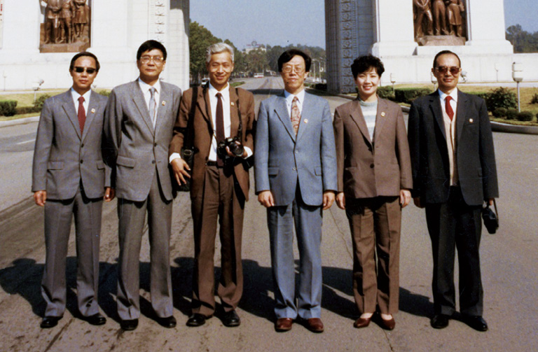 1986年,全山石(左3)与王蒙(左4)、李维康(右2)参加中国政府文化代表团访问朝鲜
