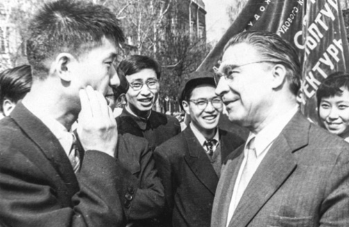 另一位给我重要帮助的老师是梅尔尼科夫。他对中国学生非常友好,戴一副眼镜,脸方方的,很神气,个子不算高,但很魁梧。我留苏的时候,他经常叫我们去他家里包饺子,他很喜欢吃饺子,但自己不会包。我们同学组织起来,到他家里包饺子,他最开心了。他很喜欢中国。1957年,他到过北京、武汉、杭州,在武汉画了很多长江的画,他觉得中国文化太优秀了,觉得中国画非常有意思,特别是齐白石的画。所以他经常跟我讲,我虽然在苏联学习,但应该好好学习中国自己的东西。20世纪90年代,他还来浙江美术学院搞过短训班,我给他当翻译。他很严格地要求我们,这个不对,那个不对,都直截了当地指出。但是,他对浙江美院学生很满意,觉得这是一个非常好的学校。他在俄罗斯讲课时,也经常提到中国,特别是提到我。他认为中国学生都很用功、很聪明,还经常把我作为一个榜样,讲给他的学生听。他的很多学生也到我们这儿,说明他对中国印象非常好,感情也比较深。