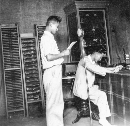 休学期间,我大哥正好搞私营广播电台,要我去帮忙。因为当时家里生活很困难,我父亲老是让刚毕业的大哥去找工作,但他不愿意,就自己研究电台的发射台。到1946年4月,我大哥就注册了一个私人电台,叫宁声广播电台,面向整个宁波市区,主要搞服务型节目。当时宁波很繁华,比杭州要繁华得多,特别是宁波和上海之间的来往比较多,因为有水路,每天有两班轮船在上海、宁波间往返。所以,宁波的市面比较好,商业比较繁荣,是个“小上海”,当年来讲,在宁波办电台是一个非常好的时机。但是,在敌伪时期以及国统区时期,因为我们所播的内容太倾向于共产党,当局就给我们下通牒,要关闭我们的电台。这种事情出了好多次,都是我哥哥去处理的,我这种“小不拉子”