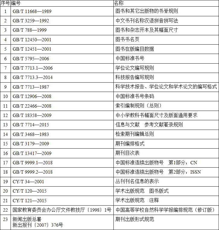 编辑应该熟悉已有的有关国家标准、新闻出版行业标准和规范。见表1–1。