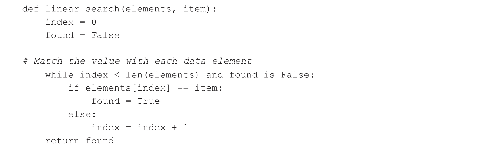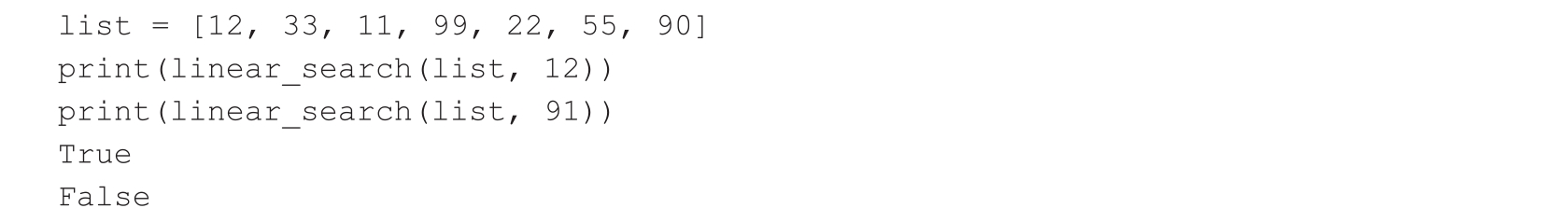 请注意,运行linear_search函数将在成功找到数据时返回True值。