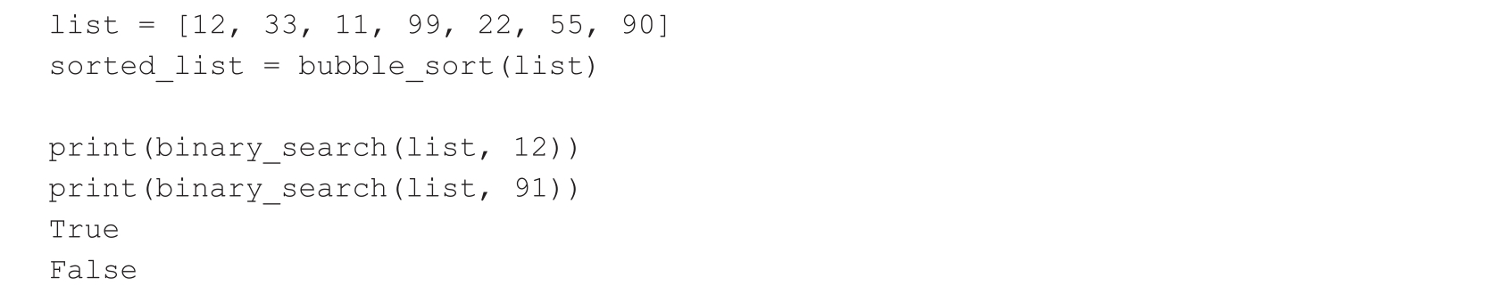 请注意,调用binary_search函数将在输入列表中找到值时返回True值。