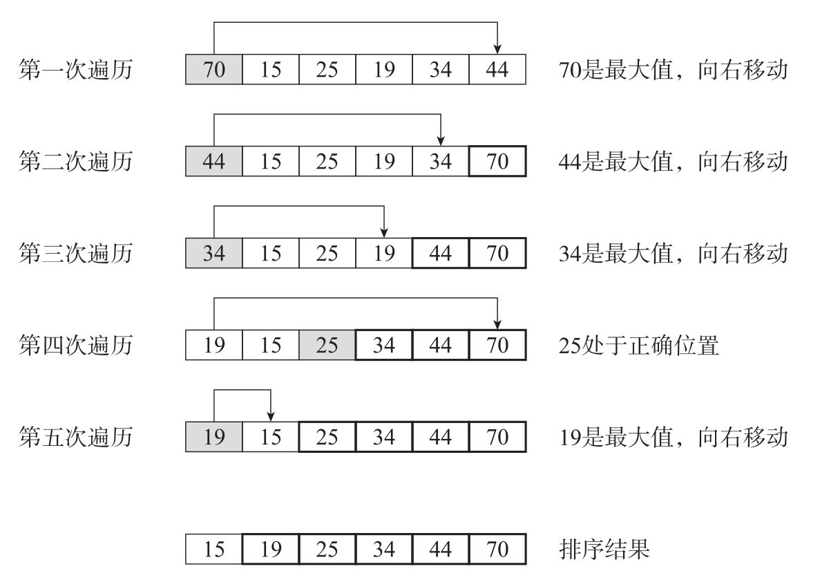 但对于一个完全未排序的、大小为 N 的列表,冒泡排序需要完全遍历 N -1次才能将其完全排序。
