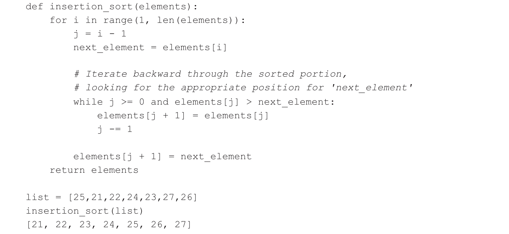 冒泡排序算法比较相邻元素,如果它们的顺序不正确,则交换它们的位置。另外,插入排序算法通过逐个转移元素来创建有序列表。如果我们有一个部分有序的列表,插入排序应该会表现得比较好。