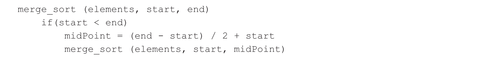 1) 分割阶段: 与直接迭代列表不同,这个阶段通过递归将数据集分成两半。这种分割持续进行,直到每个部分达到最小尺寸(举例而言,可以是单个元素)。虽然将数据分割到如此细致的级别可能看起来有些反直觉,但这种粒度有助于在下一阶段进行有序合并。