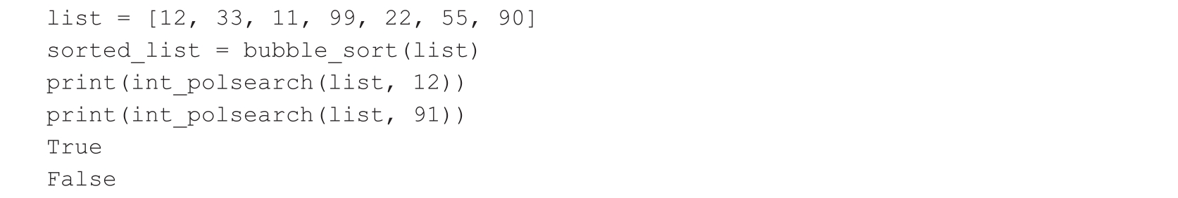 请注意,调用binary_search函数将在输入列表中找到值时返回True值。