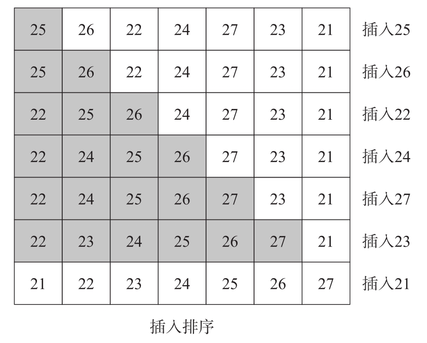 插入排序的基本思想是,在每次迭代中,我们都会从拥有的数据结构中取出一个数据点,然后将其插入到正确的位置,这就是为什么将其称为插入排序算法。