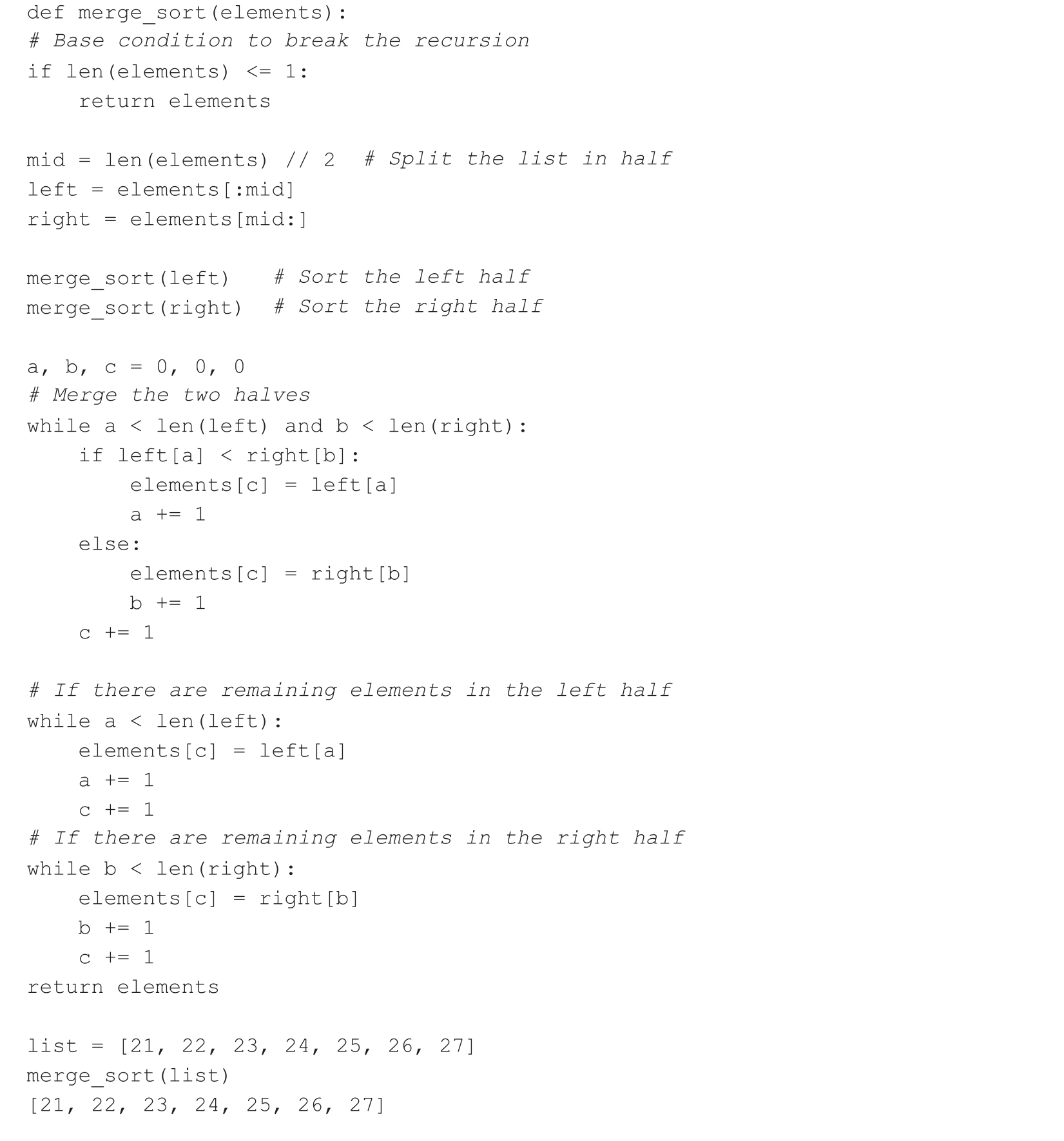 现实生活中的例子:想象一下一个庞大的图书馆,每天都收到成千上万本书。按出版日期或作者对它们进行排序需要系统化的方法。在这种情况下,像归并排序这样将任务分解为可管理的块的方法是非常宝贵的。