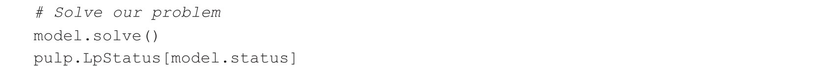 首先,我们导入名为pulp的Python包,它是用来实现线性规划的: