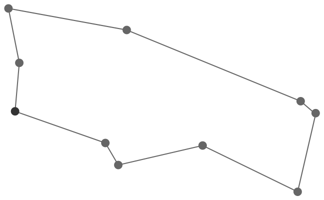 一旦定义了tsp(),我们就可以用它来创建一条旅行路线: