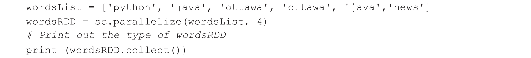 Apache Spark(https://spark.apache.org/)是一个开源框架,用于解决复杂的分布式问题。它实现了分治策略来解决问题。为了处理一个问题,它将问题分解为多个子问题,并独立地处理它们。这些子问题可以在不同的机器上运行,实现了横向扩展。我们将通过一个简单的例子来演示这一点,即从一个列表中计算单词的数量。