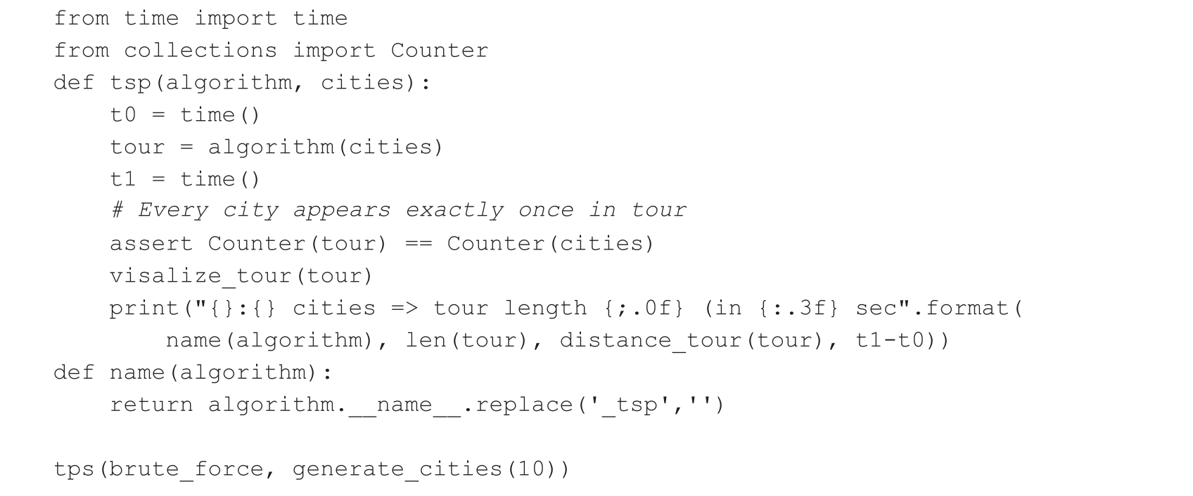 最后,我们实现函数tsp(),它可以完成以下工作: