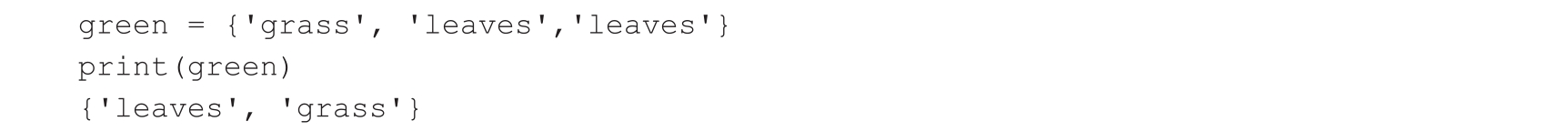 集合的定义特征是它只存储每个元素的唯一值。如果我们尝试添加另一个冗余的元素,它会忽略那个,如下所示: