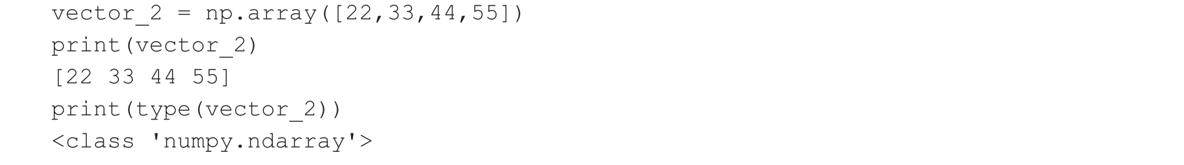 请注意在这段代码中我们使用np.array创建了名为Vector_2的向量。