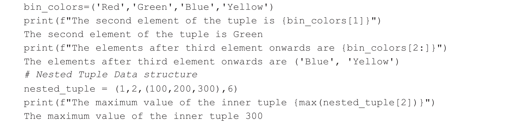 ❑ 访问元素:元组允许通过索引直接访问它们的元素。这个操作是常数时间, O (1),这意味着无论元组的大小如何,所花费的时间都保持一致。