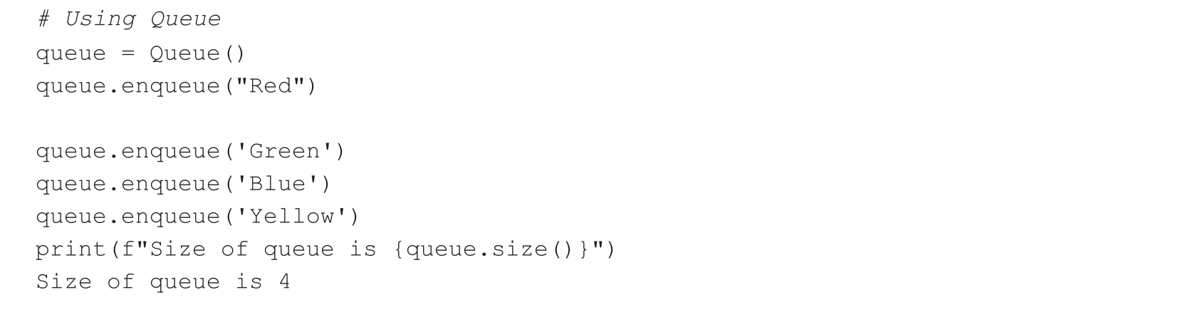 让我们使用以下代码来执行图2.5中展示的入队和出队操作: