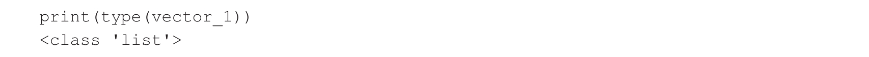 ❑ 使用Python列表: 创建向量的最简单方式是使用Python列表(List),如下所示: