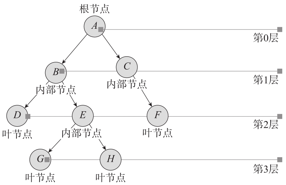 ❑ 二叉树: 如果一棵树的度数是2,那么这棵树被称为二叉树(二元树)。例如,图2.6所展示的树就是一棵二叉树,因为它的度数是2。