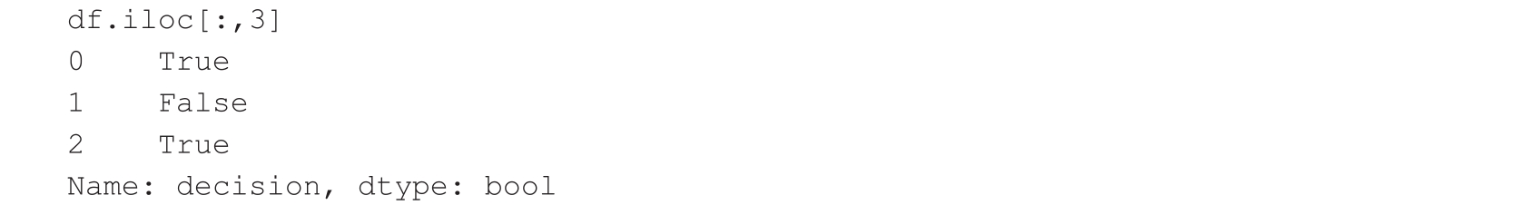 请注意,在这段代码中,我们正在检索数据帧的第四列(一共有三行数据)。