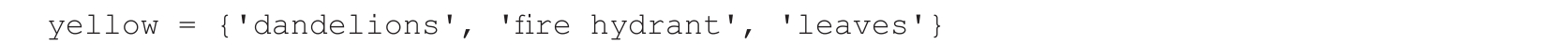 ❑ 一个集合名为yellow,里面包含了黄色的东西。