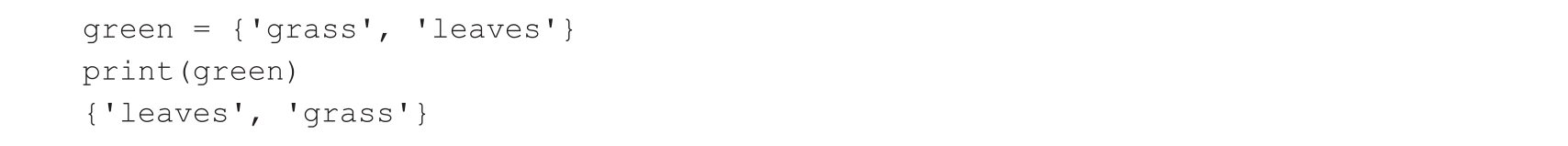 与字典密切相关的是集合,它被定义为一个无序的、不同元素的集合,这些元素可以是不同类型的。定义集合的一种方式是将值放在{}中。例如,看一下以下代码块: