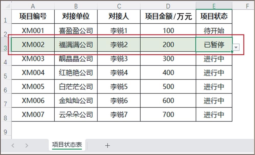 图5-28 将“已暂停”项目整行突出标记为淡绿色