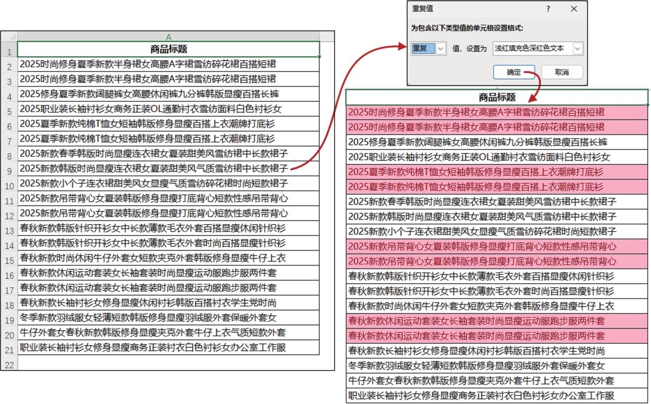 图5-7 突出显示商品标题中的重复数据