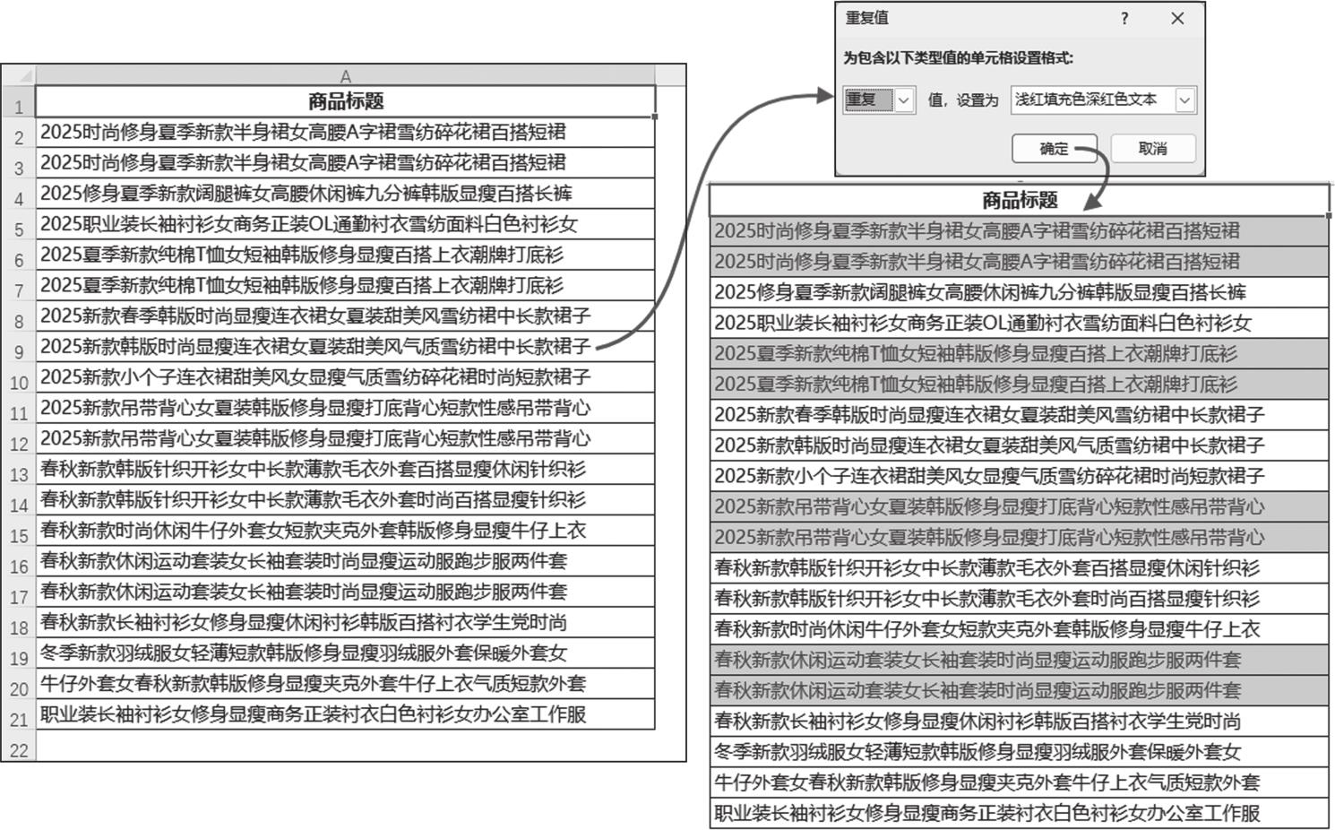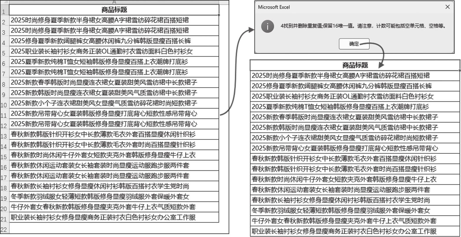 Excel中的删除重复值功能可以帮助用户快速识别并清除数据集中的重复记录(见图1-1),确保数据的唯一性和准确性。这一功能在数据清洗过程中扮演着重要的角色,有助于避免统计错误,提升数据分析质量。第2章会详细讲解该功能。