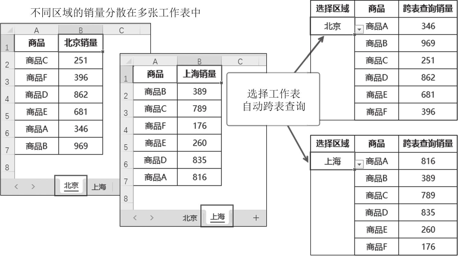 Excel支持从多张报表中查询数据,如图1-7所示。第9章会详细讲解该功能。