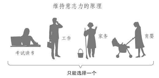 很意外吧?无论在幼儿园、学校或职场,这两个法则始终左右着我们使用意志力的方式。而储存意志力的也只有一个地方,只要使用意志力,就会逐渐消耗它。例如,要完成一件大事,但同时进行的减肥就会失败。这是因为意志力用在“工作要努力”上了,就不足以支撑控制饮食。