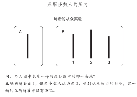 或许大家都已经知道,团体的人数越多,从众的压力就越强。此外,团体中位居中间阶级的人,屈服于压力进而从众的可能性也较高。