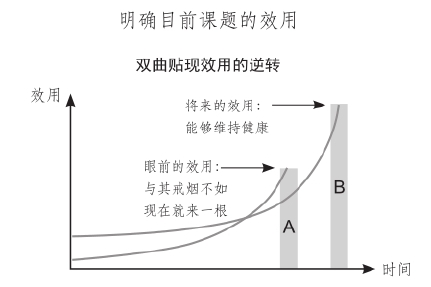 的确,让身体更健康是有吸引力的,但是这件远在未来的事太遥远了,未来的利益对当下自己的吸引力打了折扣。另一方面,“现在来根烟”的短期利益(魅力)并没有打折,因为这是当下立即能够得到的,因此你就点了一根烟。