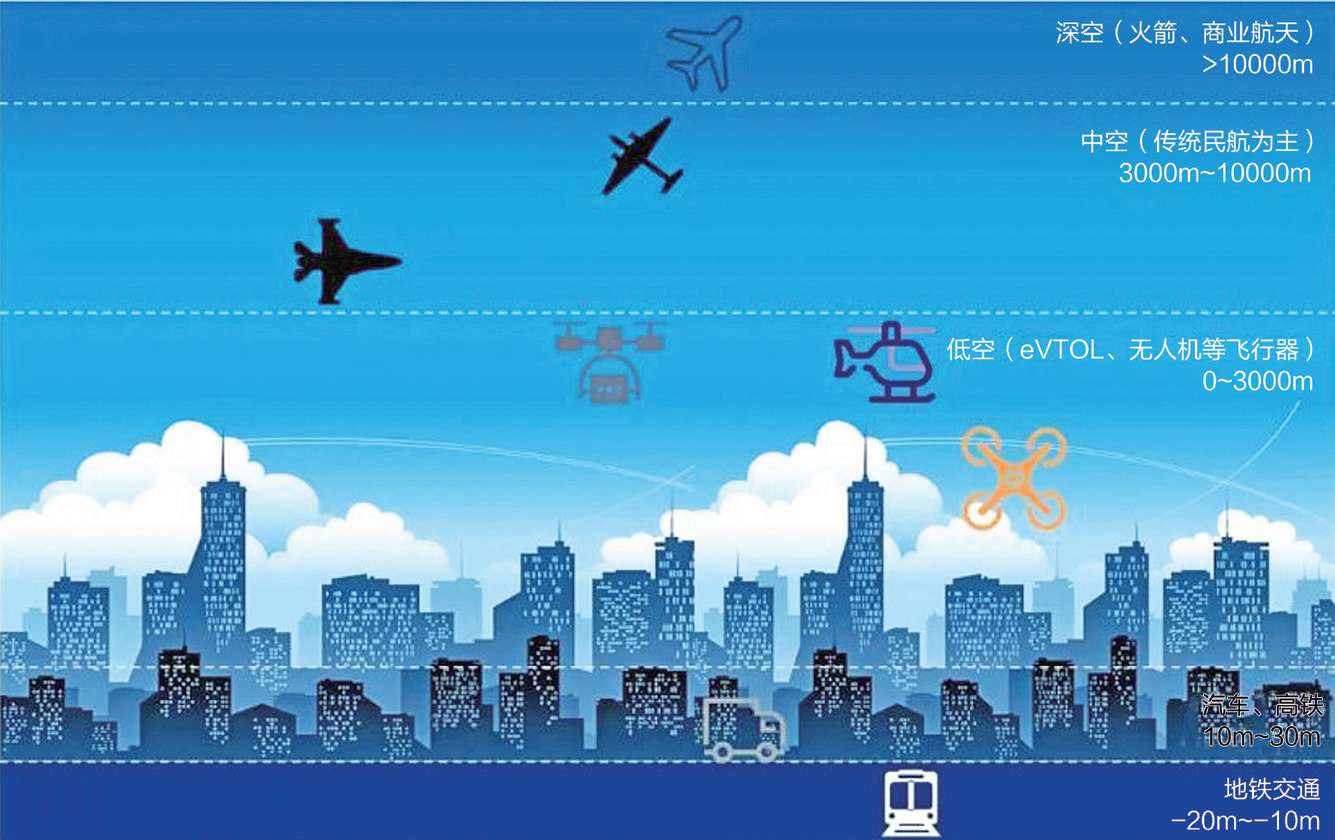 需要注意的是,以上三个空域的划分更多从人类经济活动出发,与传统地理学概念中“对流层、平流层、高层大气”的大气层划分标准或有部分重合,但不尽相同。